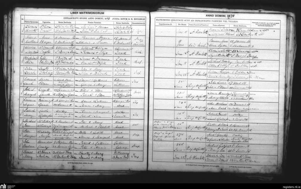 St. Andrew's, Dublin city; County of Dublin; Archdiocese of Dublin. Marriages, June 1879