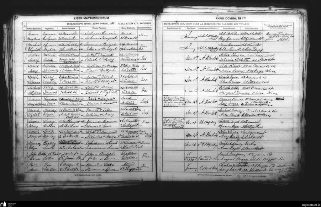 St. Andrew's, Dublin city; County of Dublin; Archdiocese of Dublin. Marriages, Jan. 1880