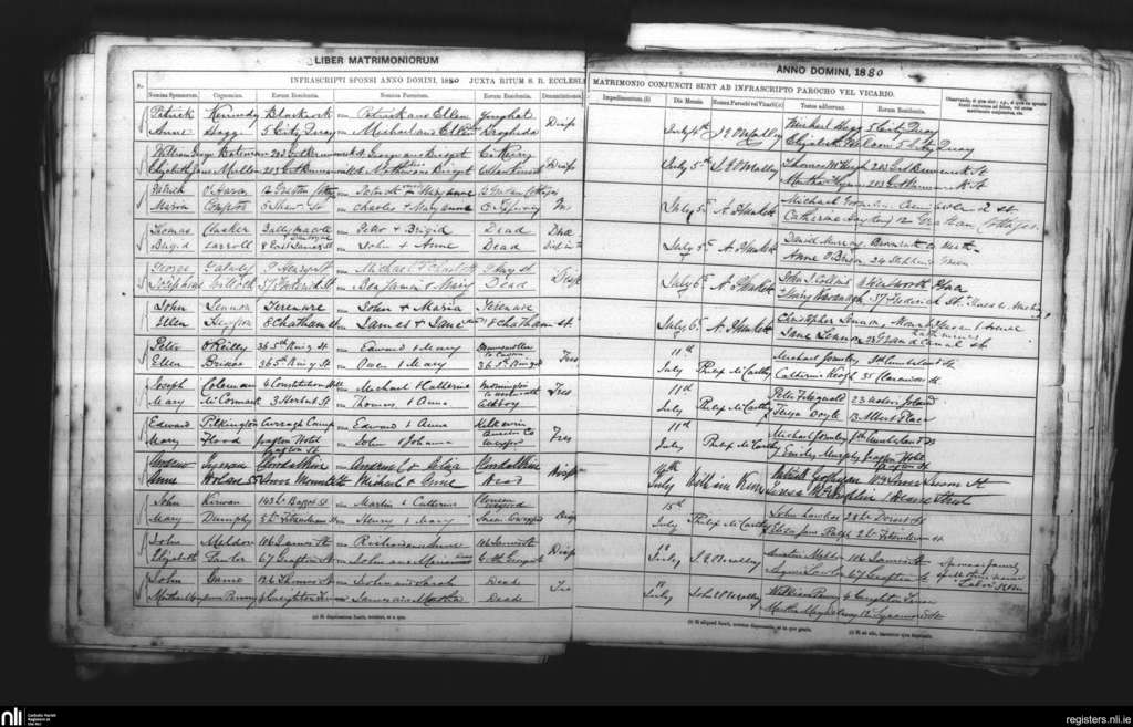 St. Andrew's, Dublin city; County of Dublin; Archdiocese of Dublin. Marriages, July 1880