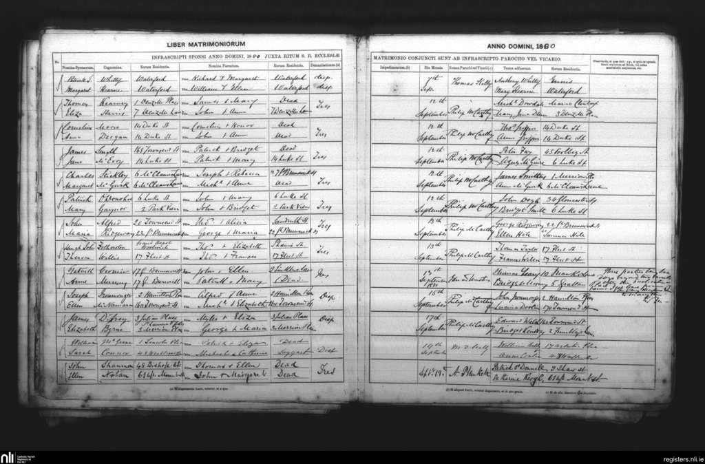 St. Andrew's, Dublin city; County of Dublin; Archdiocese of Dublin. Marriages, Sep. 1880