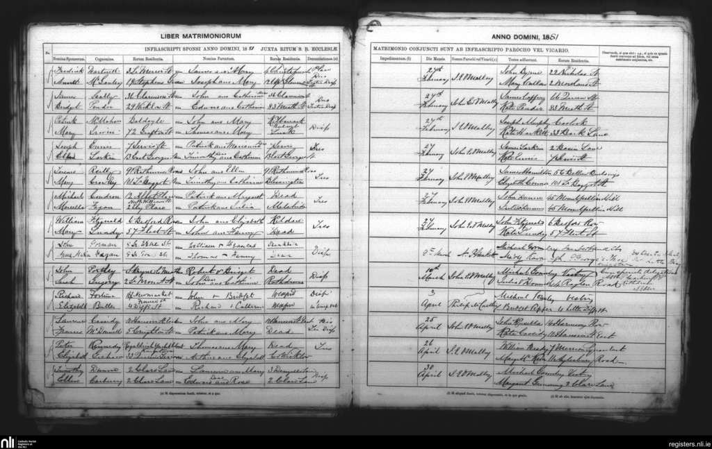 St. Andrew's, Dublin city; County of Dublin; Archdiocese of Dublin. Marriages, Feb. 1881 to Apr. 1881