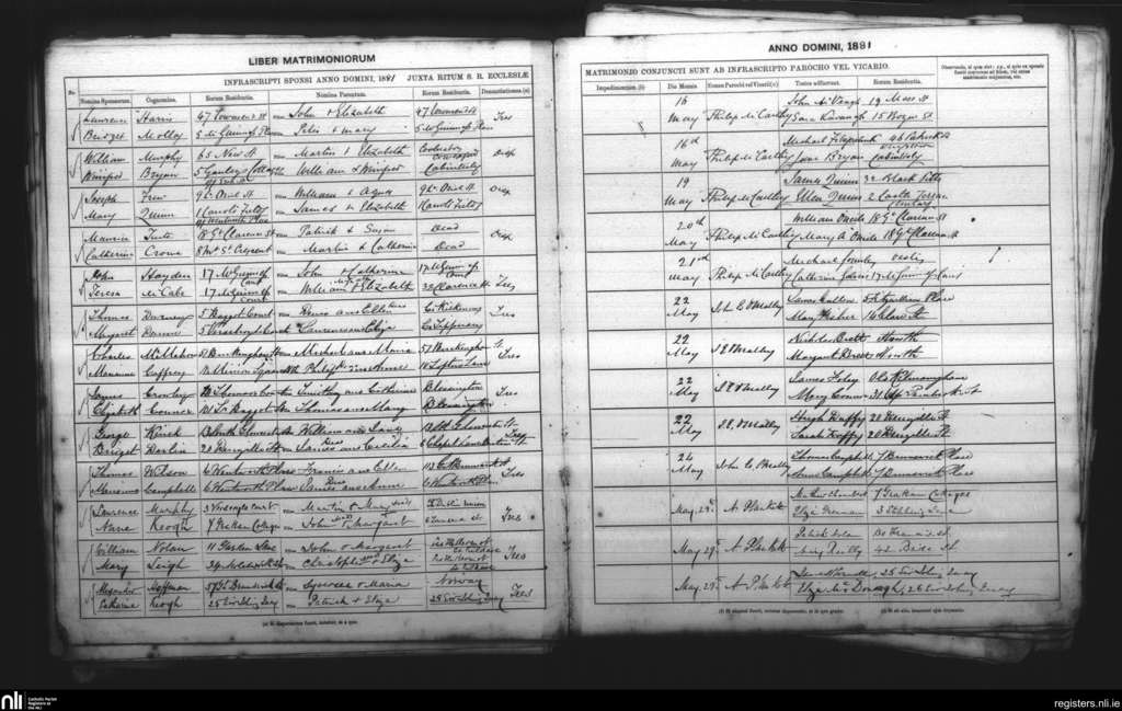 St. Andrew's, Dublin city; County of Dublin; Archdiocese of Dublin. Marriages, May 1881