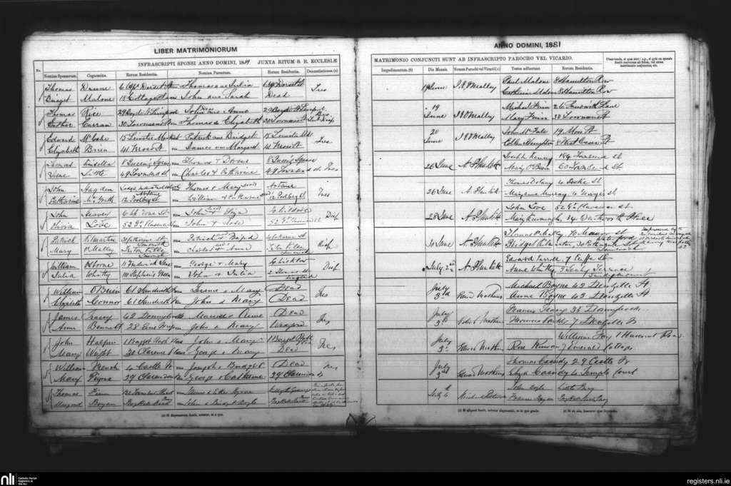 St. Andrew's, Dublin city; County of Dublin; Archdiocese of Dublin. Marriages, June 1881 to July 1881