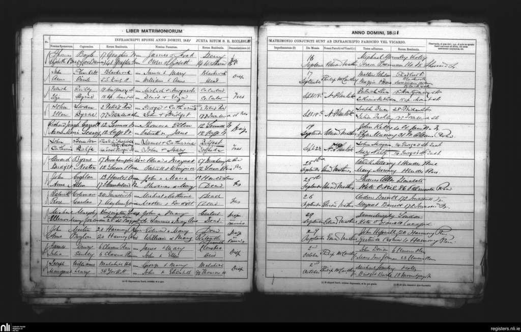 St. Andrew's, Dublin city; County of Dublin; Archdiocese of Dublin. Marriages, Sep. 1881 to Oct. 1881