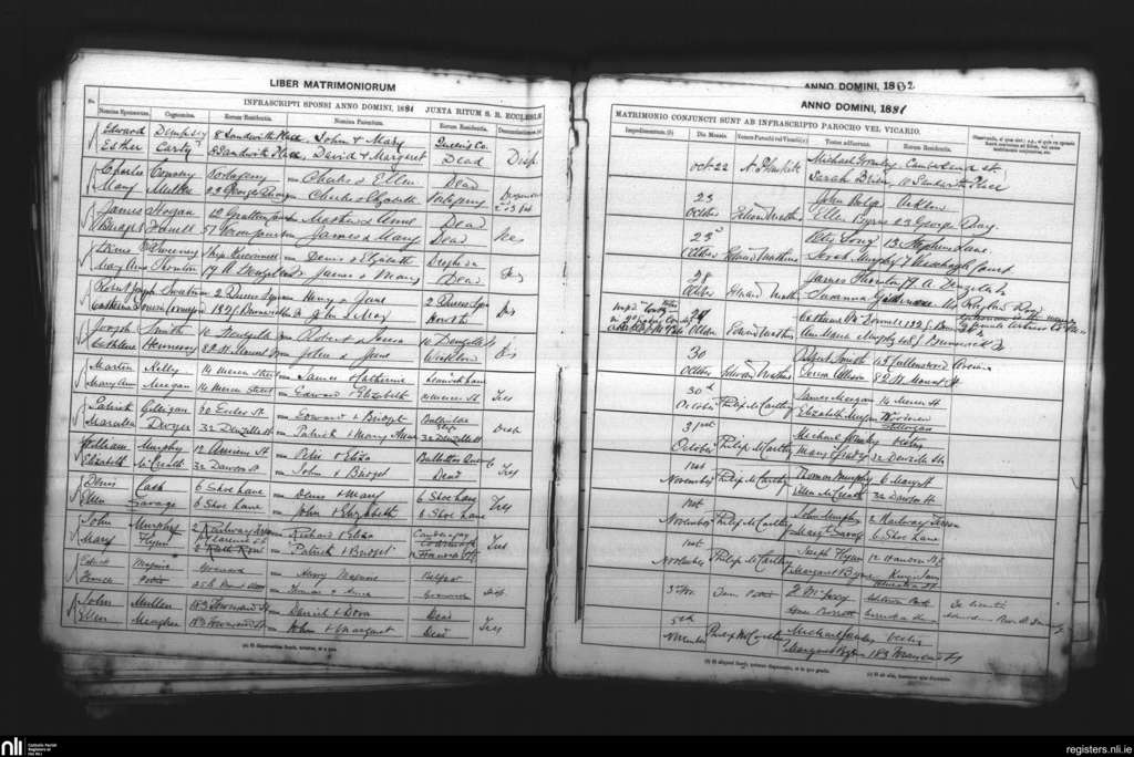 St. Andrew's, Dublin city; County of Dublin; Archdiocese of Dublin. Marriages, Oct. 1881 to Nov. 1881