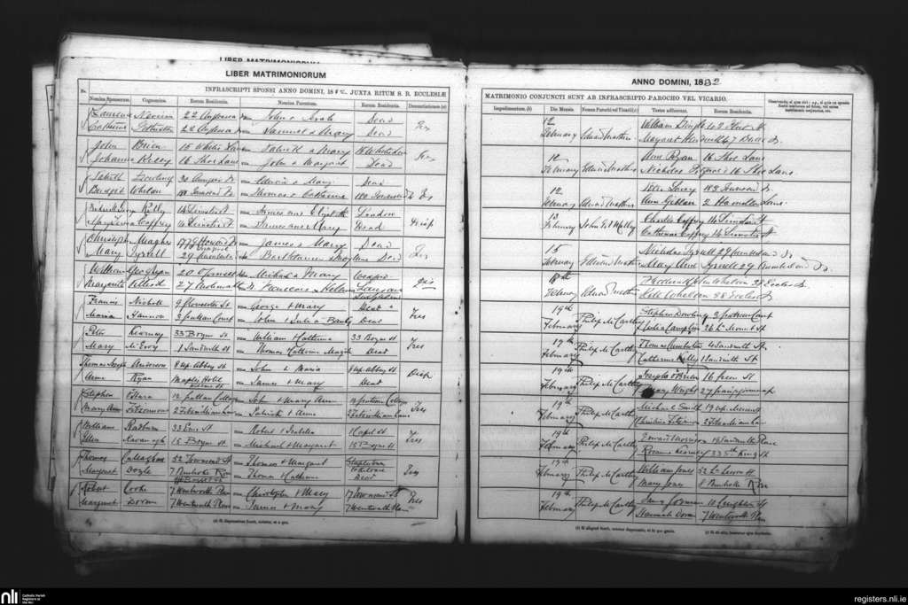 St. Andrew's, Dublin city; County of Dublin; Archdiocese of Dublin. Marriages, Feb. 1882