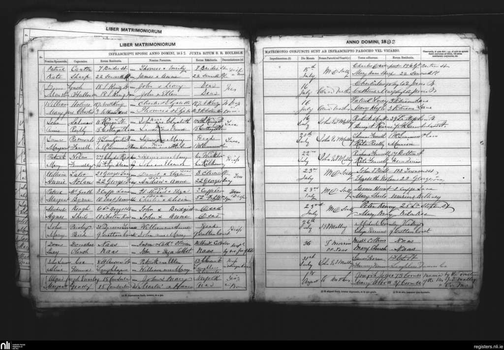St. Andrew's, Dublin city; County of Dublin; Archdiocese of Dublin. Marriages, July 1882 to Aug. 1882
