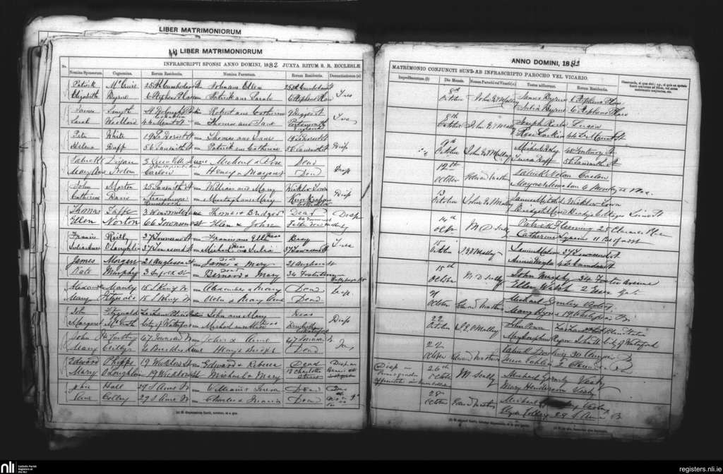 St. Andrew's, Dublin city; County of Dublin; Archdiocese of Dublin. Marriages, Oct. 1882