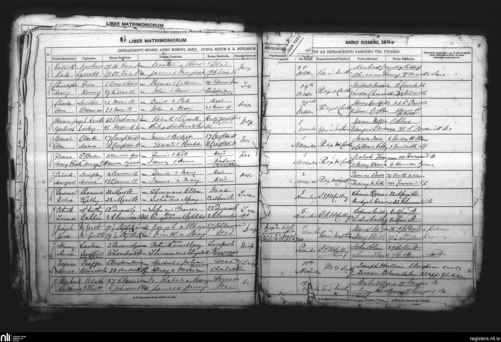 St. Andrew's, Dublin city; County of Dublin; Archdiocese of Dublin. Marriages, Oct. 1882 to Nov. 1882