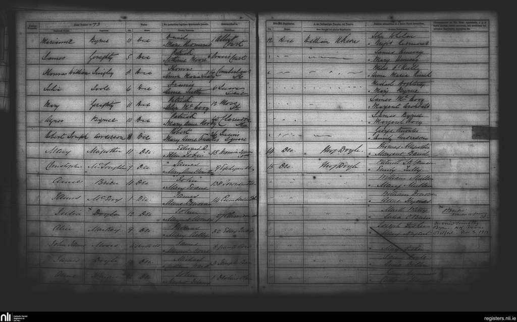 St. Andrew's, Dublin city; County of Dublin; Archdiocese of Dublin. Baptisms, Dec. 1873