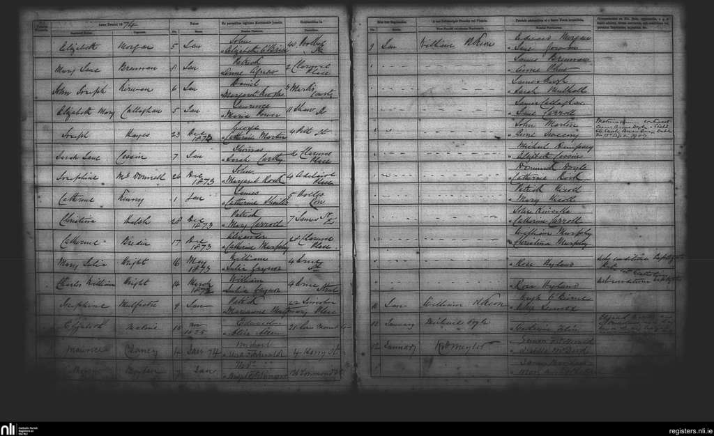 St. Andrew's, Dublin city; County of Dublin; Archdiocese of Dublin. Baptisms, Jan. 1874