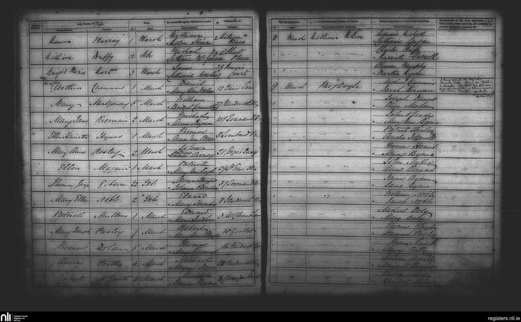 St. Andrew's, Dublin city; County of Dublin; Archdiocese of Dublin. Baptisms, Mar. 1874
