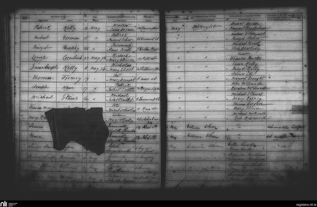 St. Andrew's, Dublin city; County of Dublin; Archdiocese of Dublin. Baptisms, May 1874