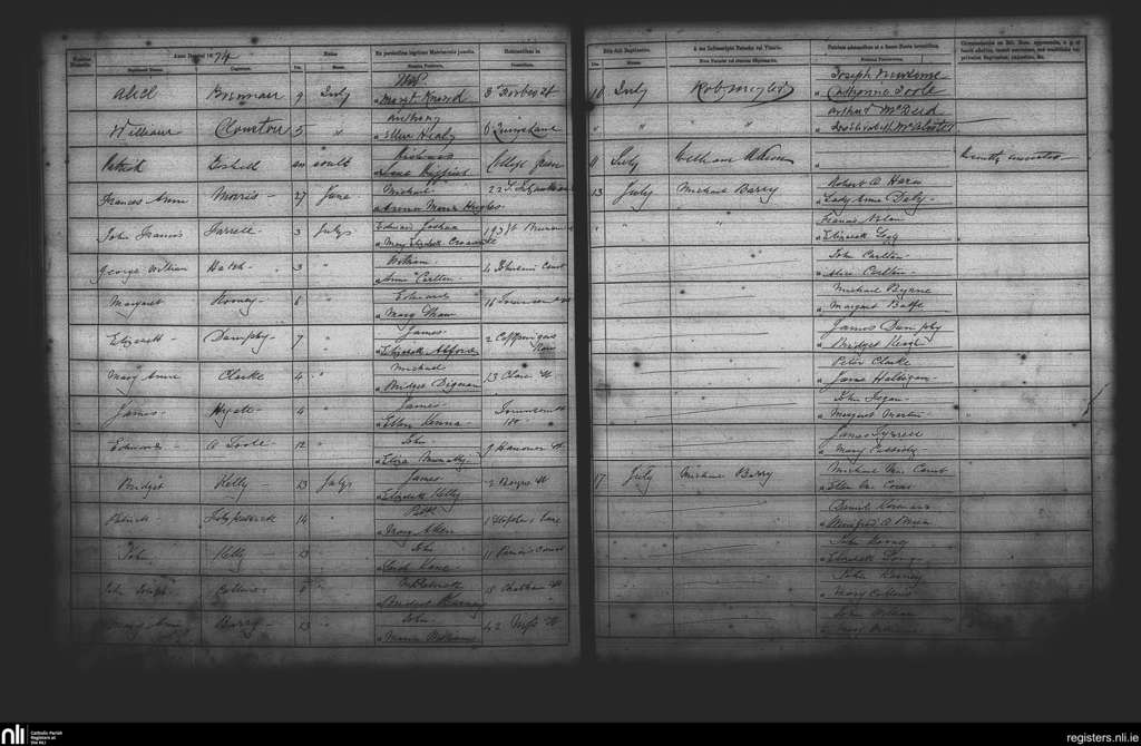 St. Andrew's, Dublin city; County of Dublin; Archdiocese of Dublin. Baptisms, July 1874
