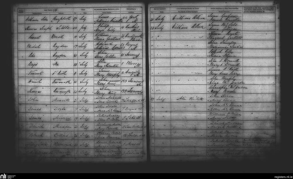 St. Andrew's, Dublin city; County of Dublin; Archdiocese of Dublin. Baptisms, July 1874