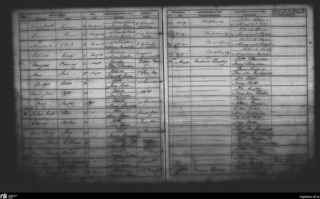 St. Andrew's, Dublin city; County of Dublin; Archdiocese of Dublin. Baptisms, Aug. 1874 to Sep. 1874