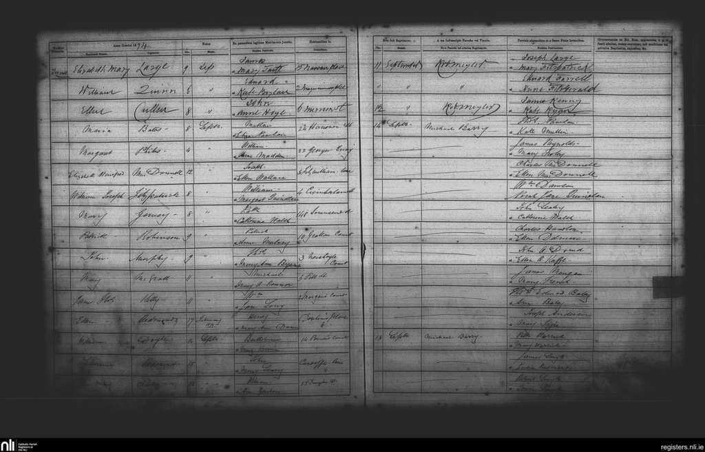 St. Andrew's, Dublin city; County of Dublin; Archdiocese of Dublin. Baptisms, Sep. 1874