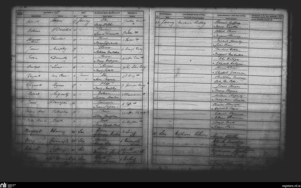 St. Andrew's, Dublin city; County of Dublin; Archdiocese of Dublin. Baptisms, Jan. 1875