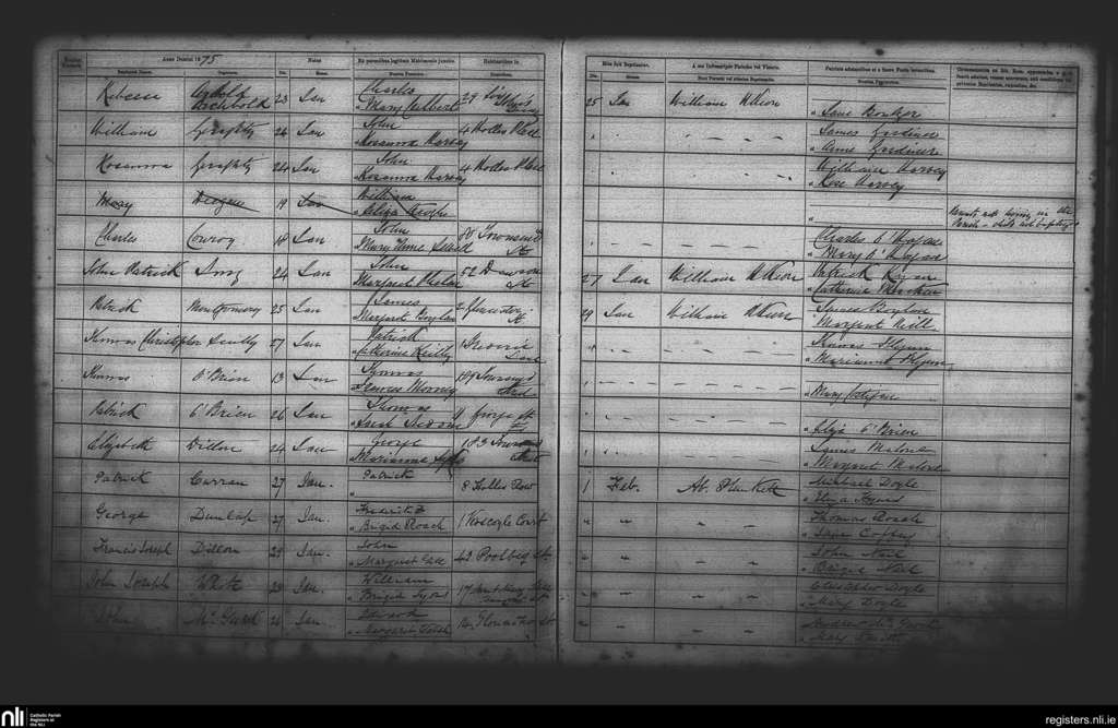 St. Andrew's, Dublin city; County of Dublin; Archdiocese of Dublin. Baptisms, Jan. 1875 to Feb. 1875