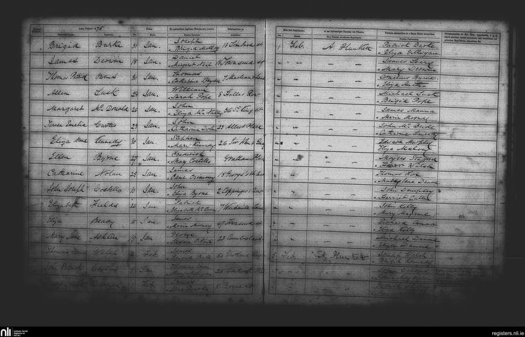 St. Andrew's, Dublin city; County of Dublin; Archdiocese of Dublin. Baptisms, Feb. 1875