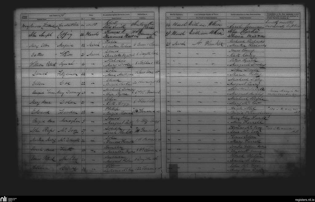 St. Andrew's, Dublin city; County of Dublin; Archdiocese of Dublin. Baptisms, Mar. 1875