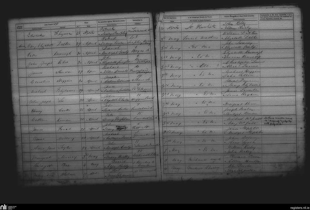 St. Andrew's, Dublin city; County of Dublin; Archdiocese of Dublin. Baptisms, Apr. 1875 to May 1875