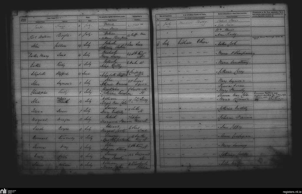 St. Andrew's, Dublin city; County of Dublin; Archdiocese of Dublin. Baptisms, July 1875
