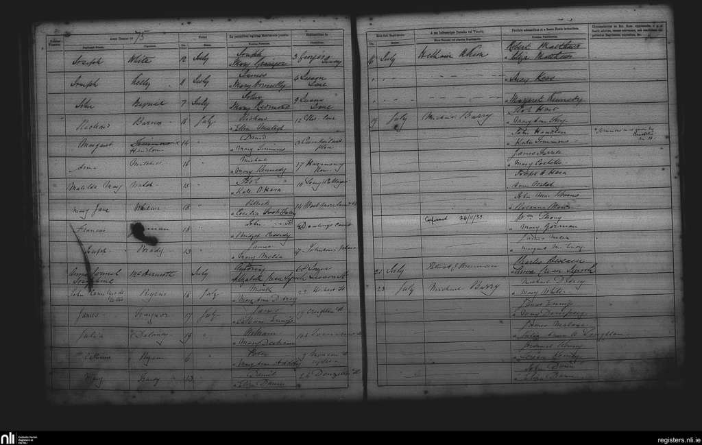 St. Andrew's, Dublin city; County of Dublin; Archdiocese of Dublin. Baptisms, July 1875