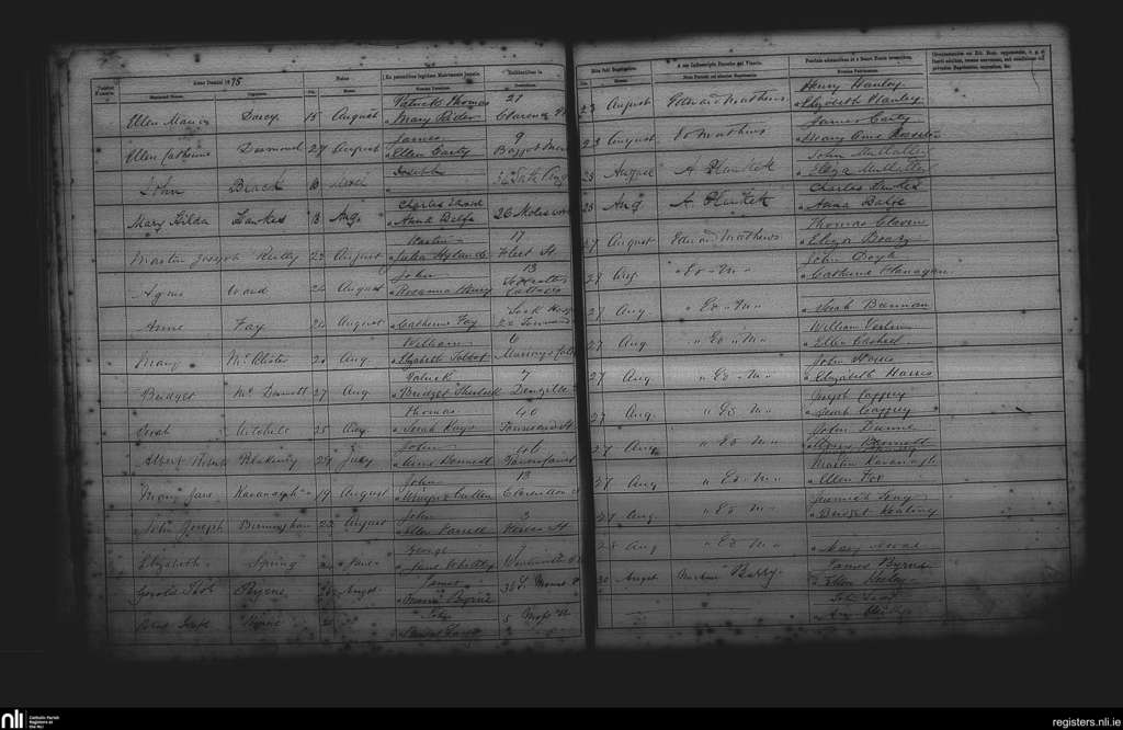 St. Andrew's, Dublin city; County of Dublin; Archdiocese of Dublin. Baptisms, Aug. 1875
