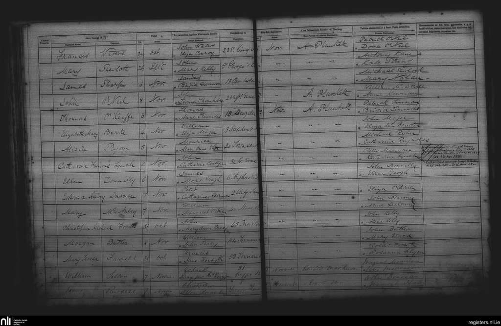 St. Andrew's, Dublin city; County of Dublin; Archdiocese of Dublin. Baptisms, Nov. 1875