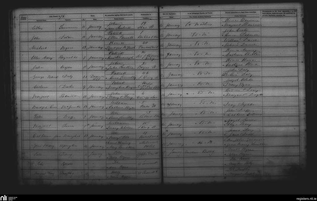 St. Andrew's, Dublin city; County of Dublin; Archdiocese of Dublin. Baptisms, Jan. 1876