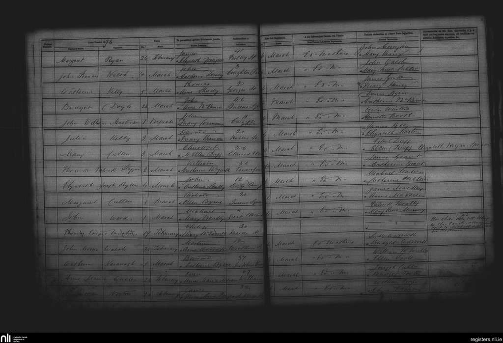 St. Andrew's, Dublin city; County of Dublin; Archdiocese of Dublin. Baptisms, Mar. 1876