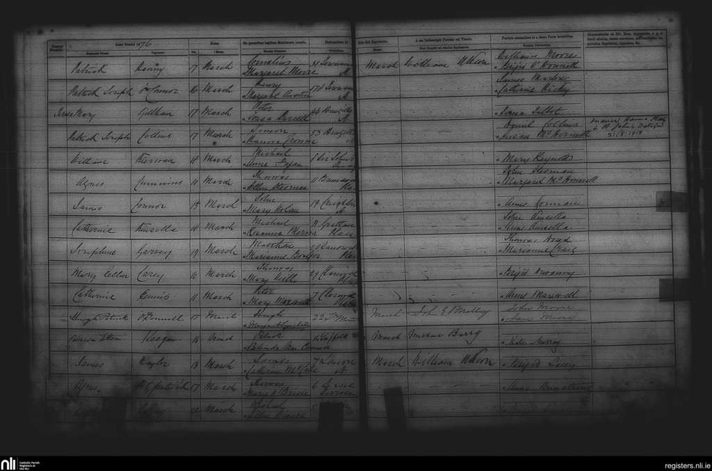 St. Andrew's, Dublin city; County of Dublin; Archdiocese of Dublin. Baptisms, Mar. 1876