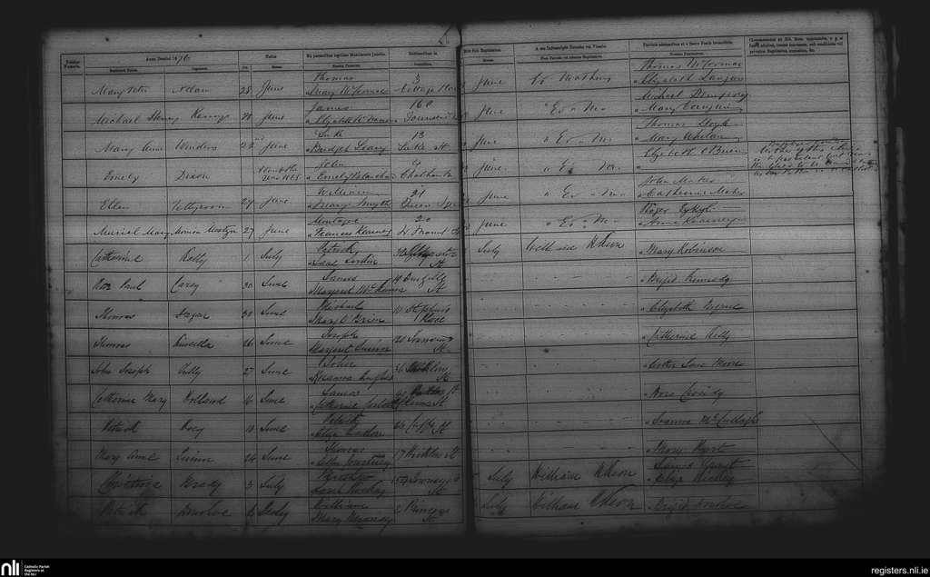 St. Andrew's, Dublin city; County of Dublin; Archdiocese of Dublin. Baptisms, June 1876 to July 1876