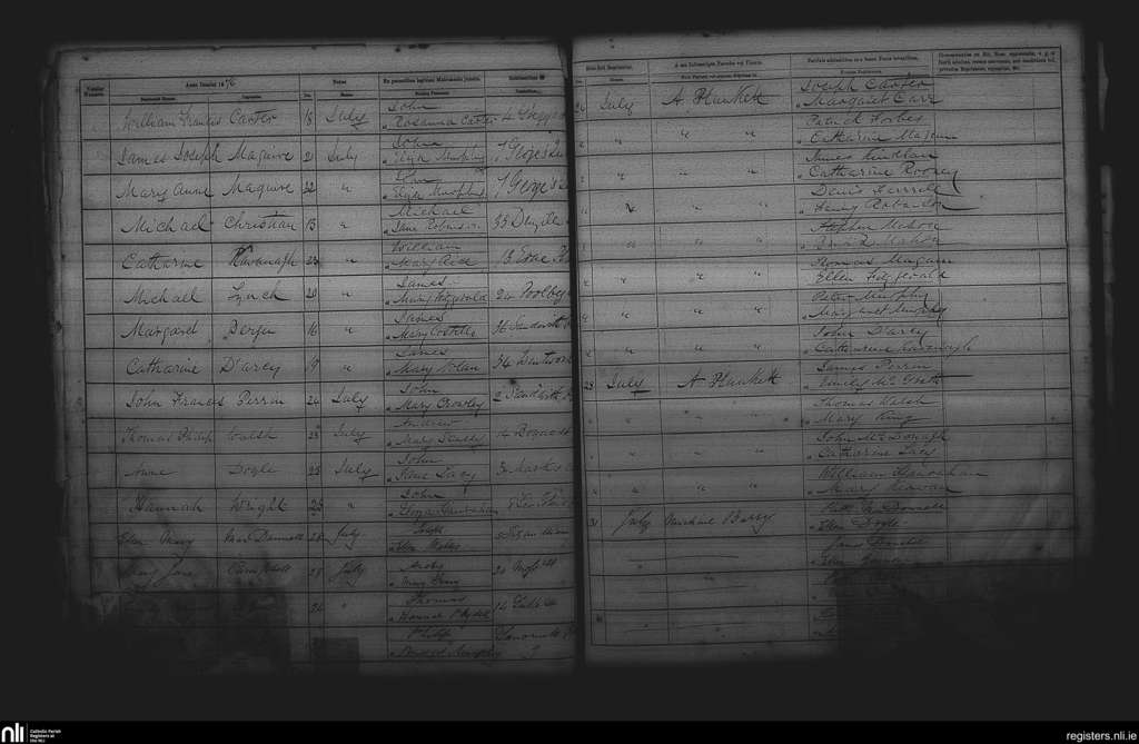 St. Andrew's, Dublin city; County of Dublin; Archdiocese of Dublin. Baptisms, July 1876