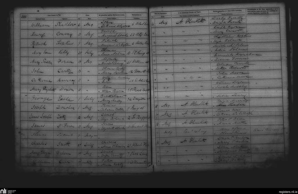 St. Andrew's, Dublin city; County of Dublin; Archdiocese of Dublin. Baptisms, July 1876 to Aug. 1876
