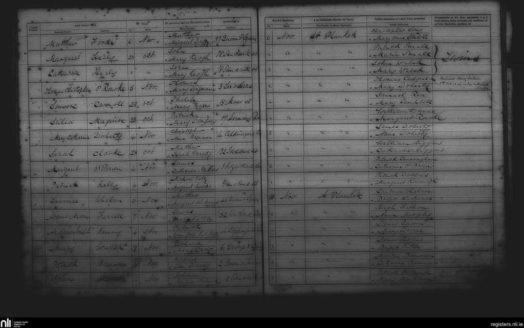 St. Andrew's, Dublin city; County of Dublin; Archdiocese of Dublin. Baptisms, Nov. 1876