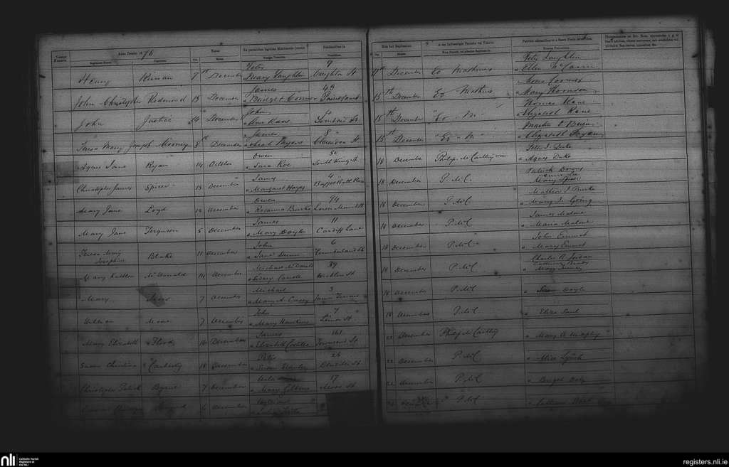 St. Andrew's, Dublin city; County of Dublin; Archdiocese of Dublin. Baptisms, Dec. 1876