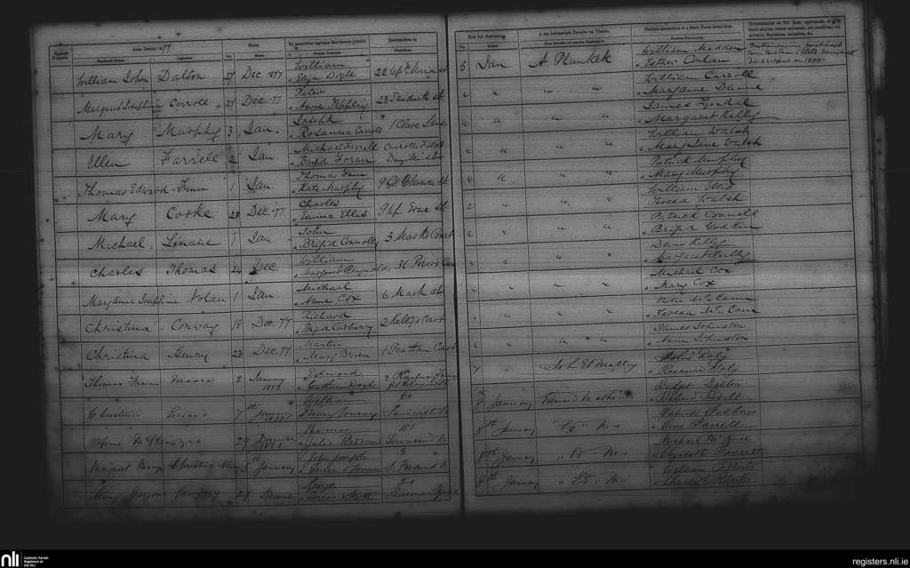 St. Andrew's, Dublin city; County of Dublin; Archdiocese of Dublin. Baptisms, Jan. 1877