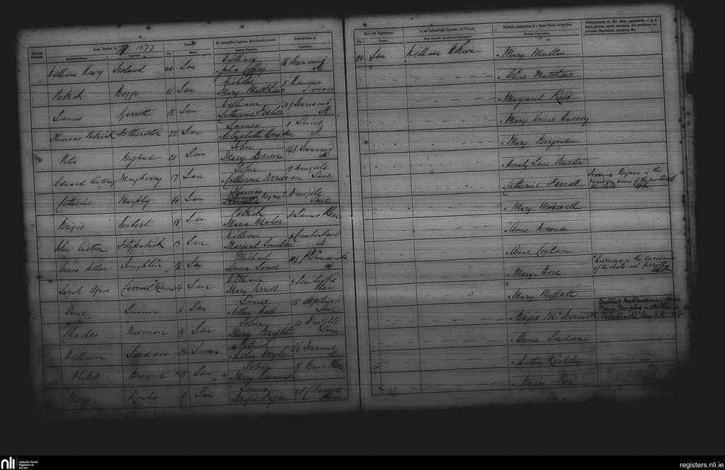 St. Andrew's, Dublin city; County of Dublin; Archdiocese of Dublin. Baptisms, Jan. 1877