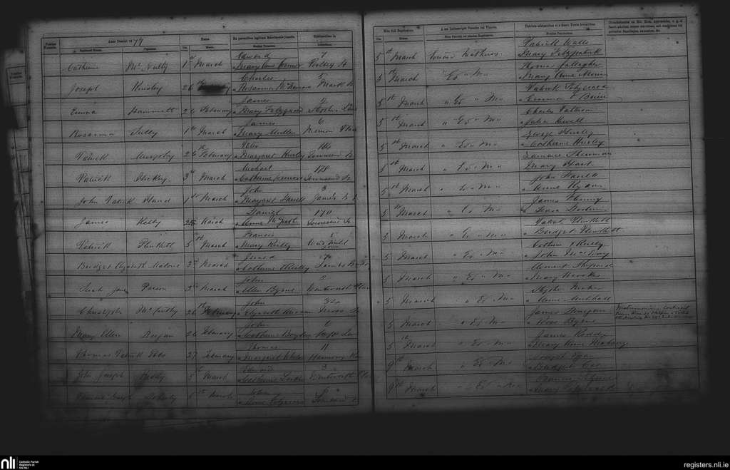 St. Andrew's, Dublin city; County of Dublin; Archdiocese of Dublin. Baptisms, Mar. 1877
