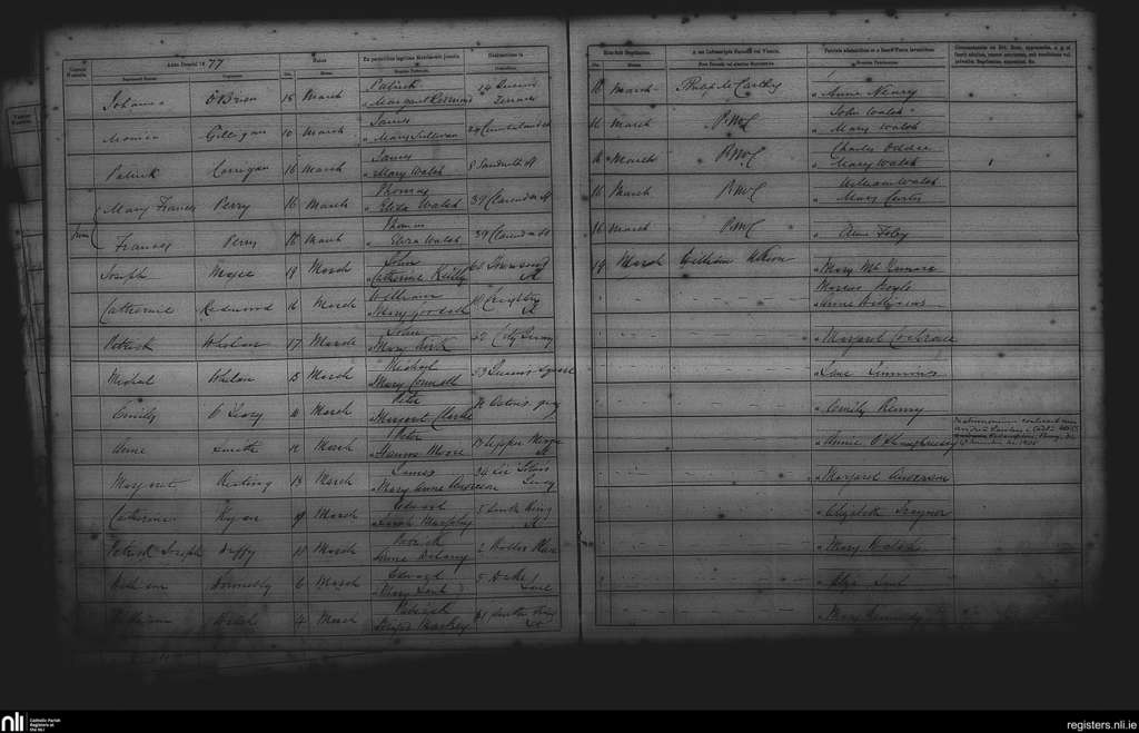 St. Andrew's, Dublin city; County of Dublin; Archdiocese of Dublin. Baptisms, Mar. 1877