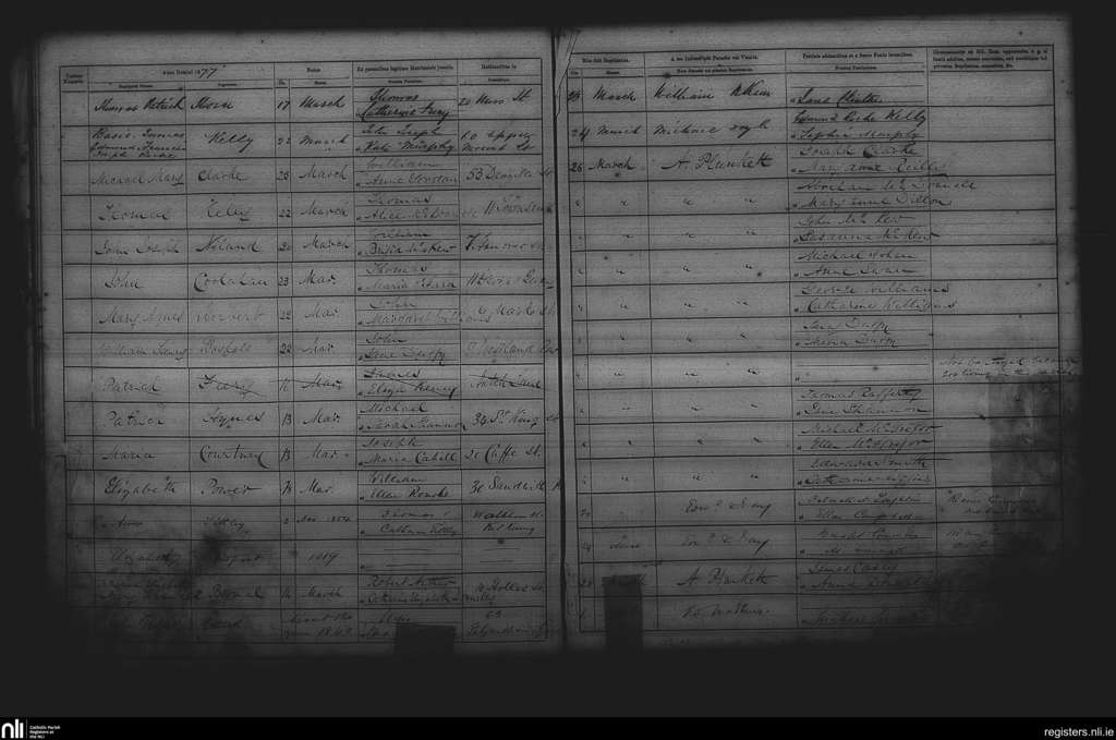 St. Andrew's, Dublin city; County of Dublin; Archdiocese of Dublin. Baptisms, Mar. 1877 to Apr. 1877