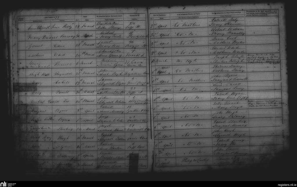 St. Andrew's, Dublin city; County of Dublin; Archdiocese of Dublin. Baptisms, Mar. 1877 to Apr. 1877