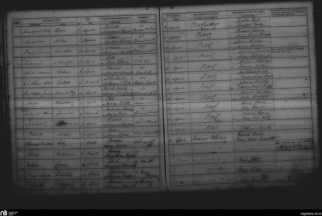 St. Andrew's, Dublin city; County of Dublin; Archdiocese of Dublin. Baptisms, Apr. 1877
