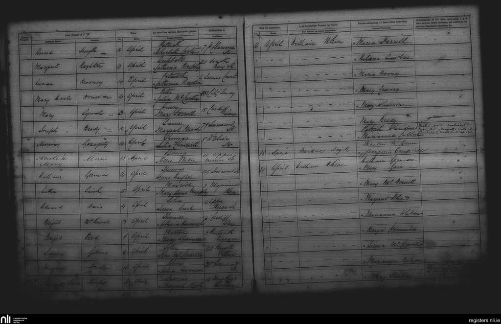St. Andrew's, Dublin city; County of Dublin; Archdiocese of Dublin. Baptisms, Apr. 1877