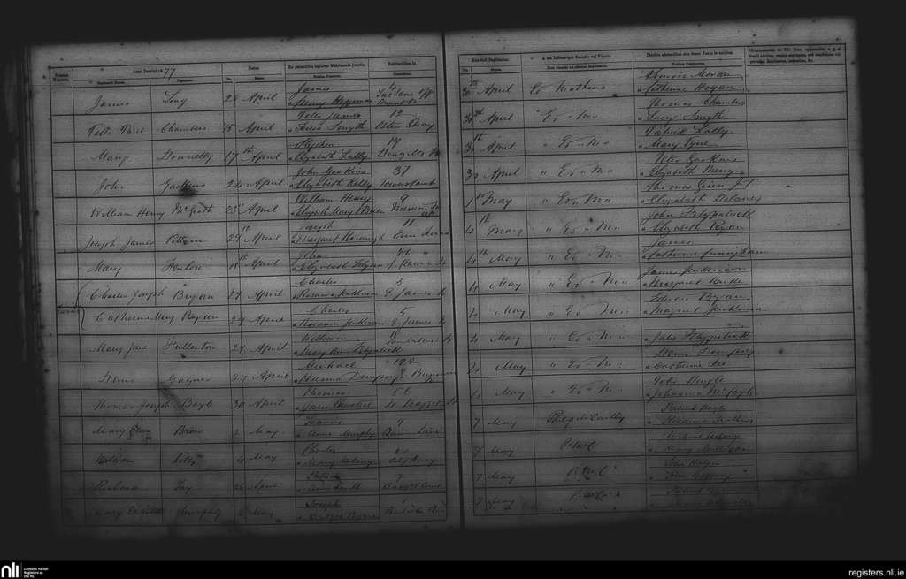 St. Andrew's, Dublin city; County of Dublin; Archdiocese of Dublin. Baptisms, Apr. 1877 to May 1877