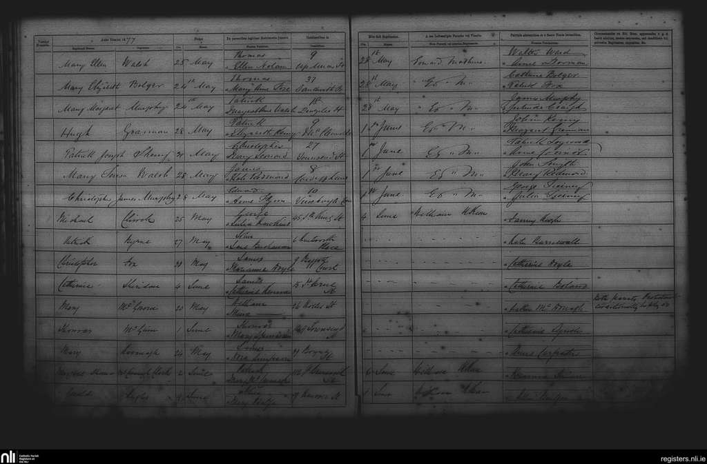 St. Andrew's, Dublin city; County of Dublin; Archdiocese of Dublin. Baptisms, May 1877 to June 1877