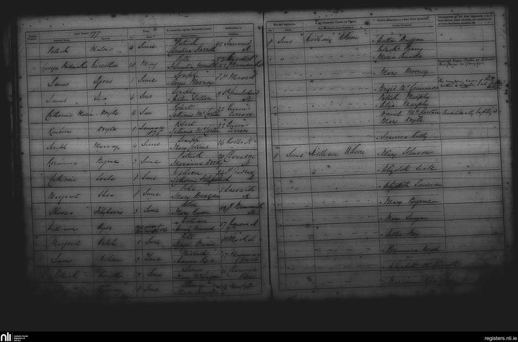 St. Andrew's, Dublin city; County of Dublin; Archdiocese of Dublin. Baptisms, June 1877