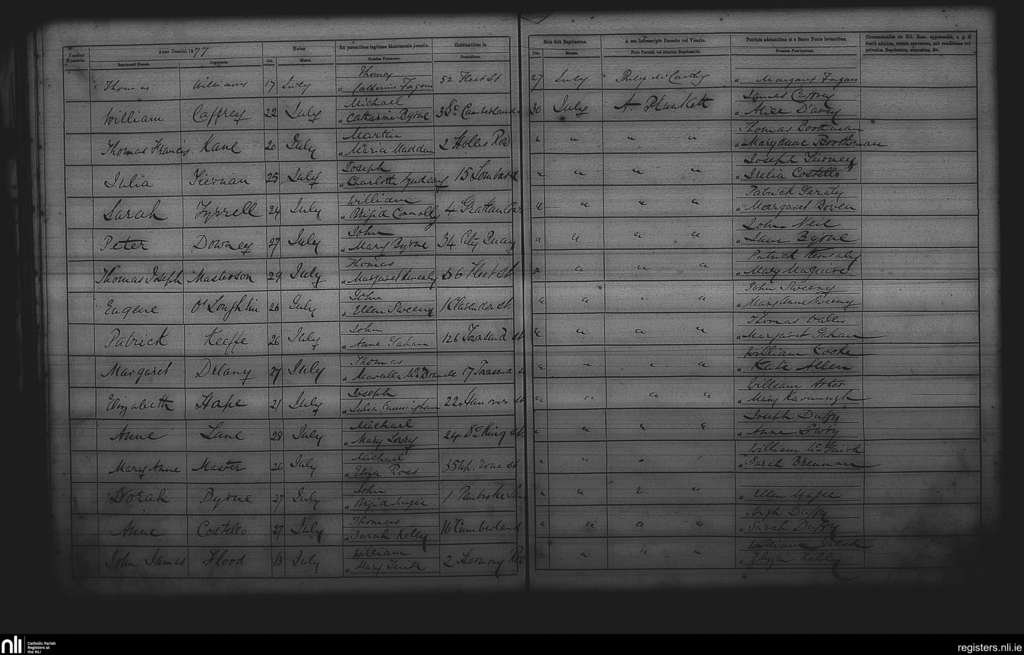St. Andrew's, Dublin city; County of Dublin; Archdiocese of Dublin. Baptisms, July 1877